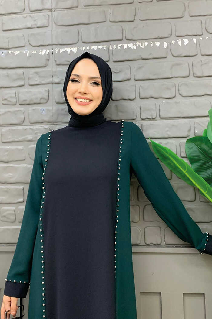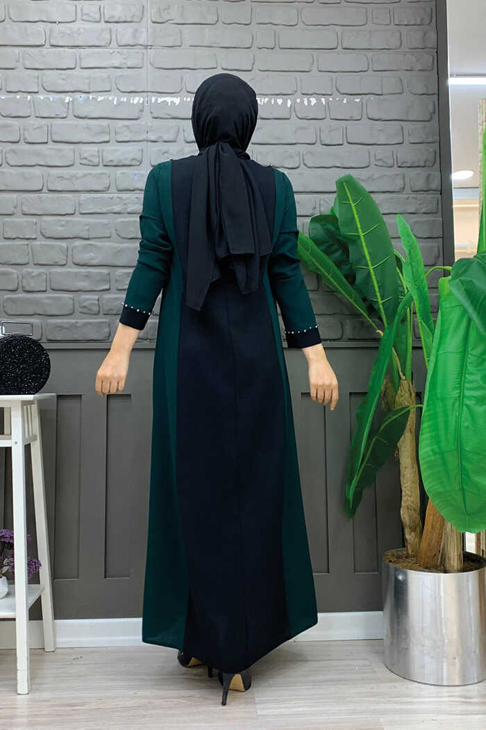 İki Renkli Taş Baskılı Elbise 3848 Zümrüt