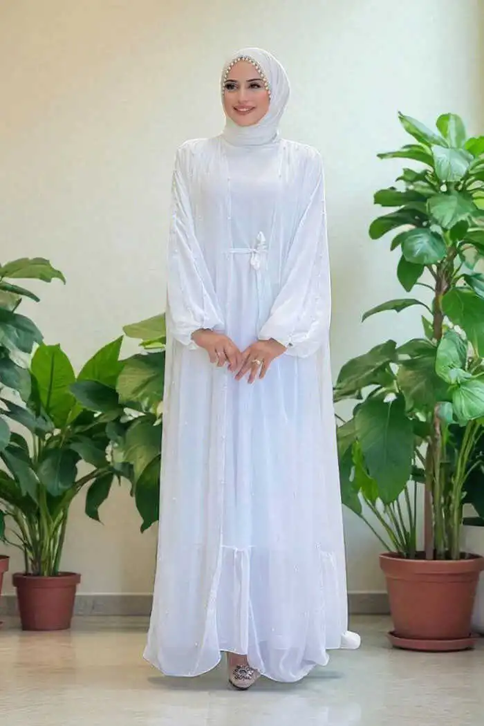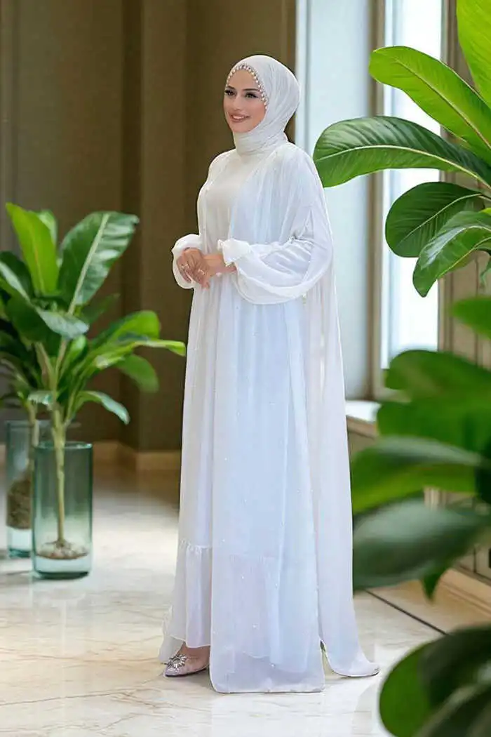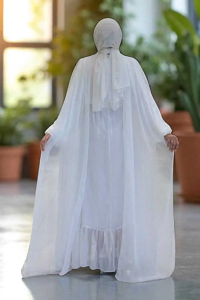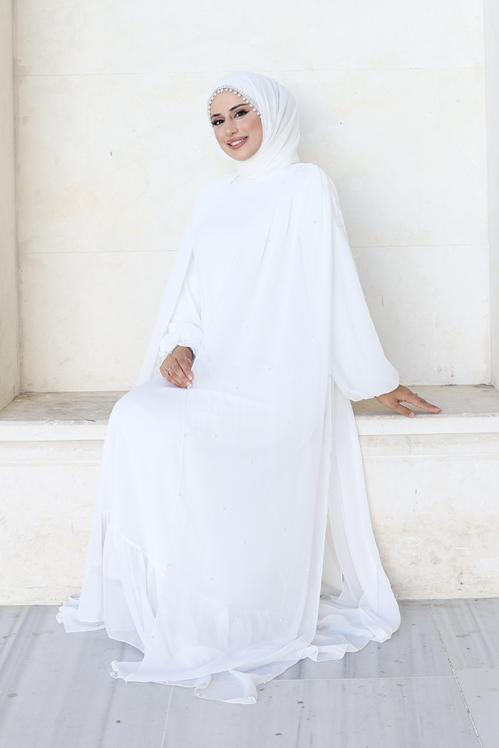İnci Detaylı Pelerinli Elbise 3973 Ekru