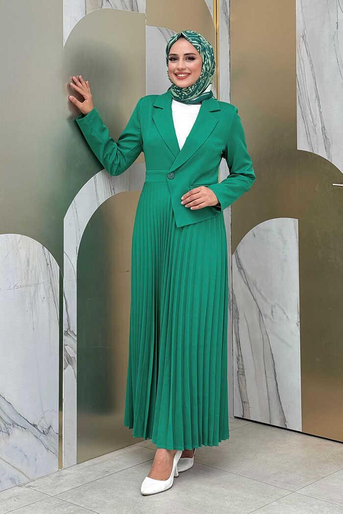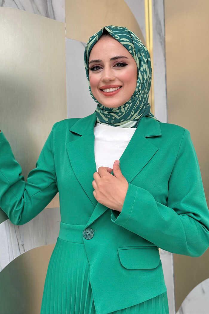 Pi·li·seli· الجزء العلوي من الفستان يتميز بمظهر السترة. الجبهة بأزرار. تفاصيل الجيب متاحة. التنورة مطوية. توجد وسادة قطنية في الجزء الداخلي من الكتف. الخصر الجانبي مزود بسحاب. نسيج كريب مزدوج 38/46 نطاق المقاسات 38 قياسات المقاس: الكتف 38 سم الأكمام 64 سم العضلة ذات الرأسين 30 سم العرض 90 سم الخصر 78 سم الطول 145 سم هناك 2 سم من اللعب بين مقاساتنا الأخرى. حجم عارضات الأزياء لدينا هو 38، ويبلغ طولها في المتوسط 165-170 سم، ويتراوح وزنها بين 55-60 كجم.