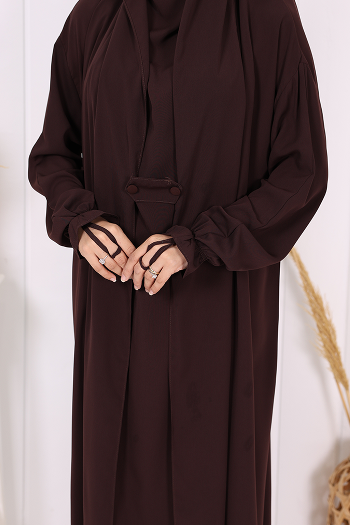 Kendinden Peçeli Sufleli Cilbab 6032 Kahverengi