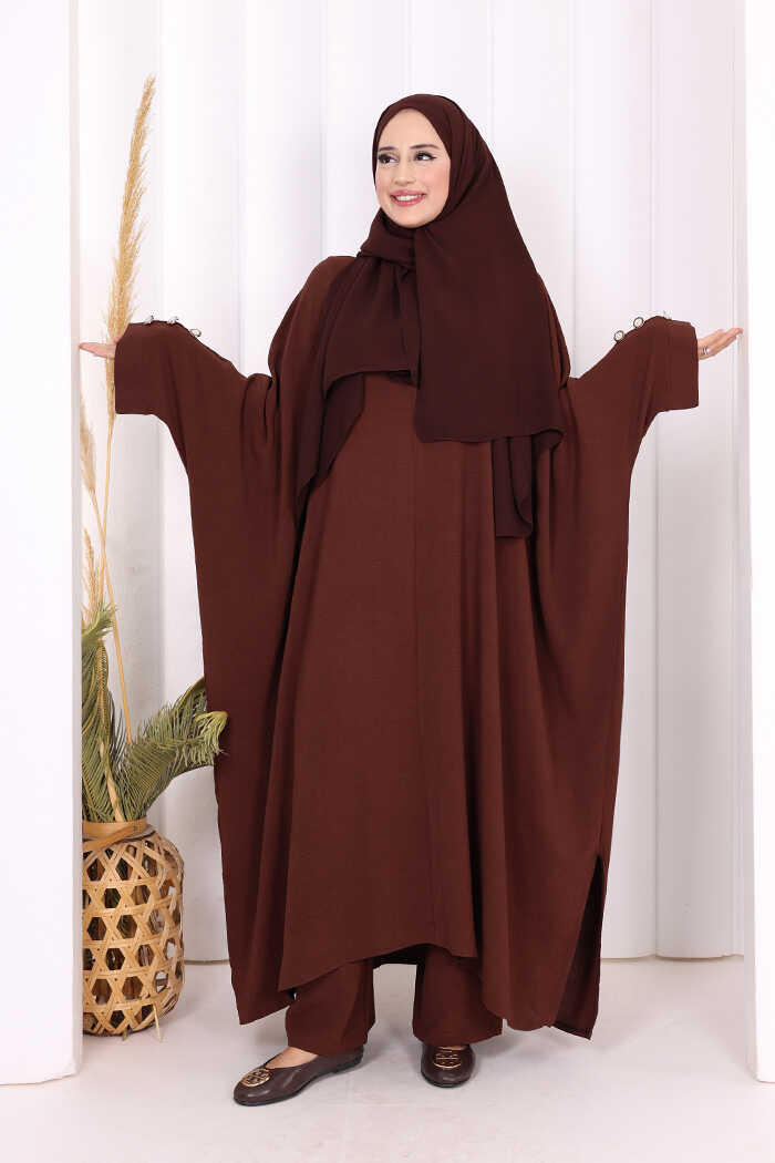 Kol Düğme Detaylı Tunik Pantolon İkili Takım 8688 Kahverengi