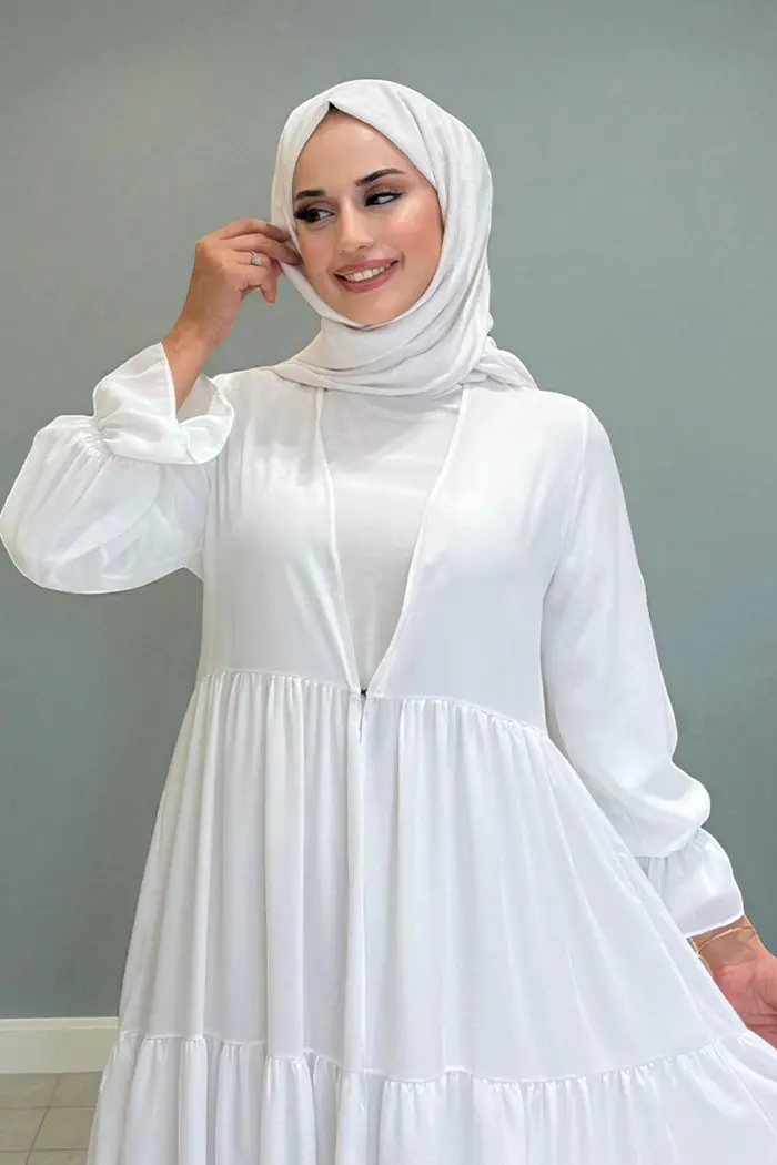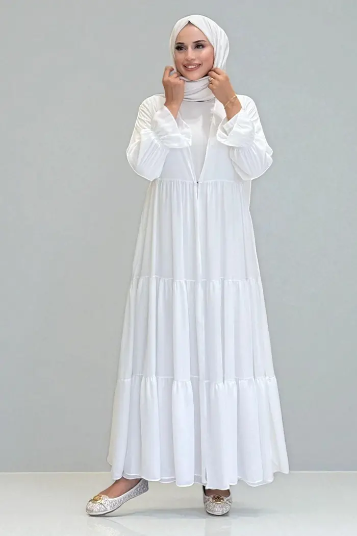 Kol Lastikli Kat Görünümlü Abayalı Elbise Takım 3859 Ekru