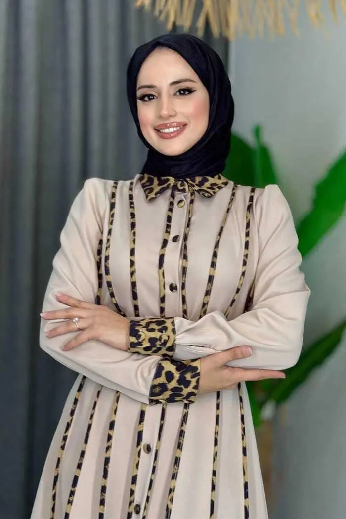 LEOPAR BİYELİ KEMERLİ ELBİSE: