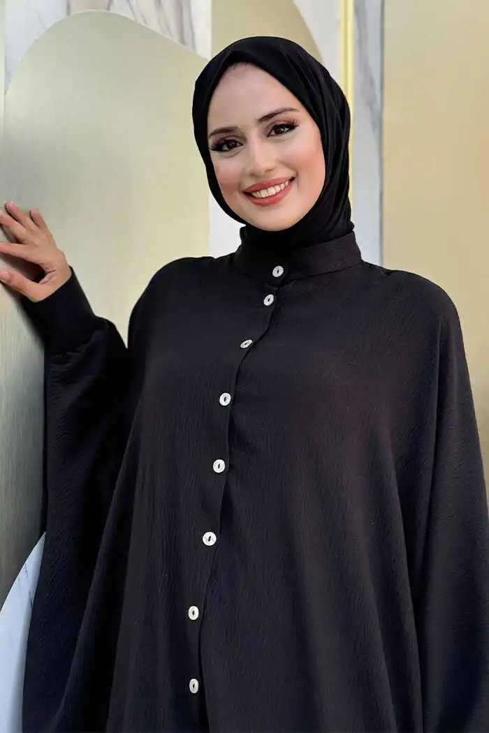 Ön Kısmı Boydan Düğmeli Salaş Elbise 7910 Siyah