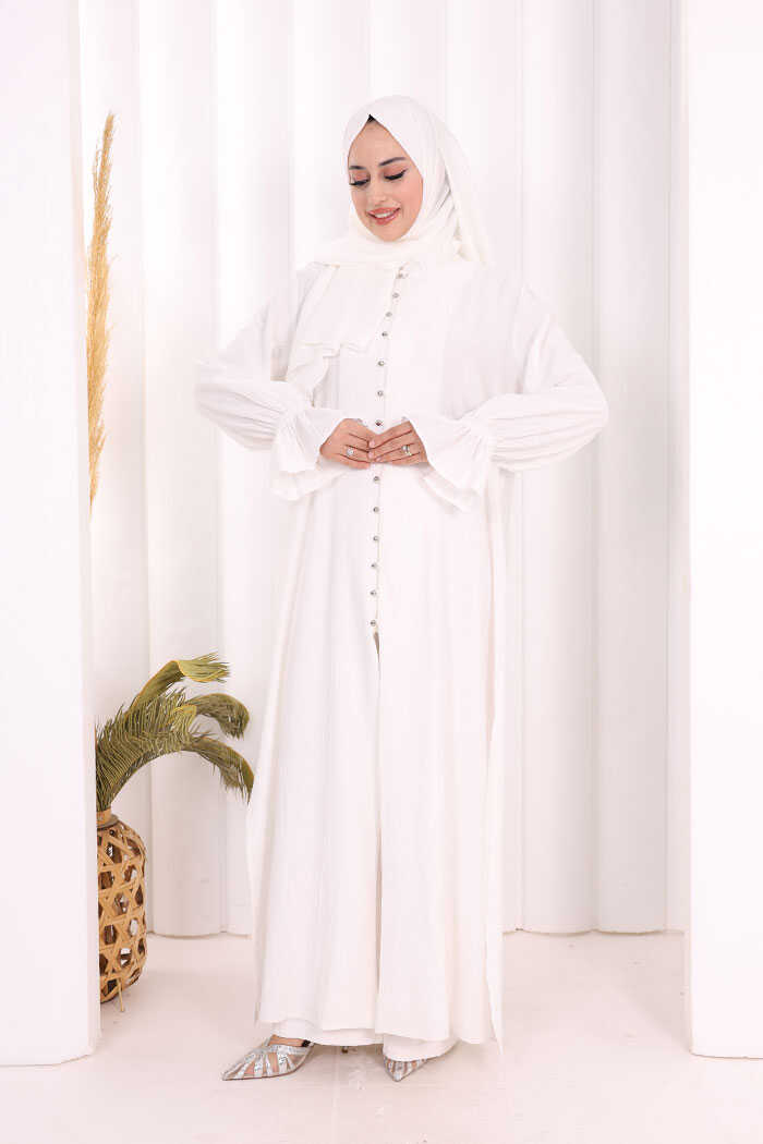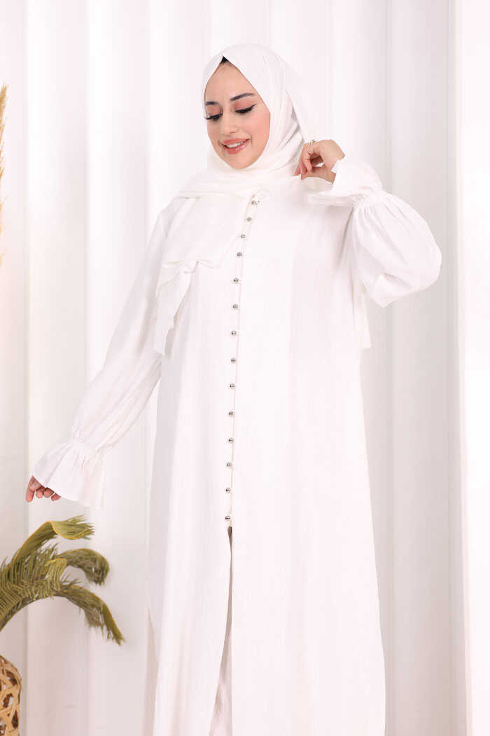 Hac Umre Takım Önü Düğmeli Tunik,Pantolon ŞAL HEDİYE 8014 Ekru