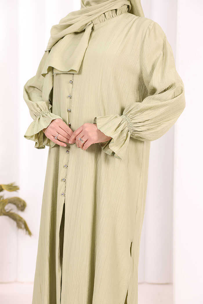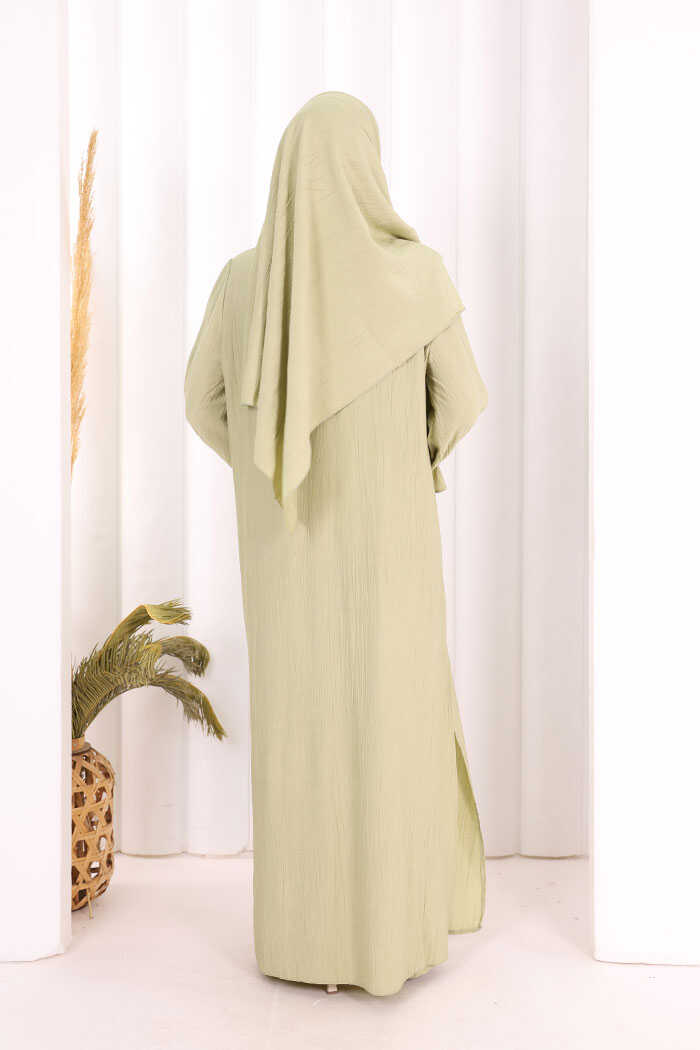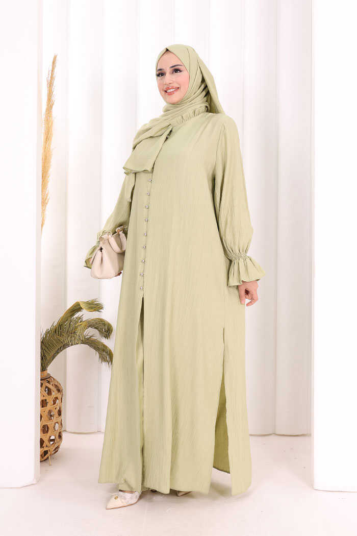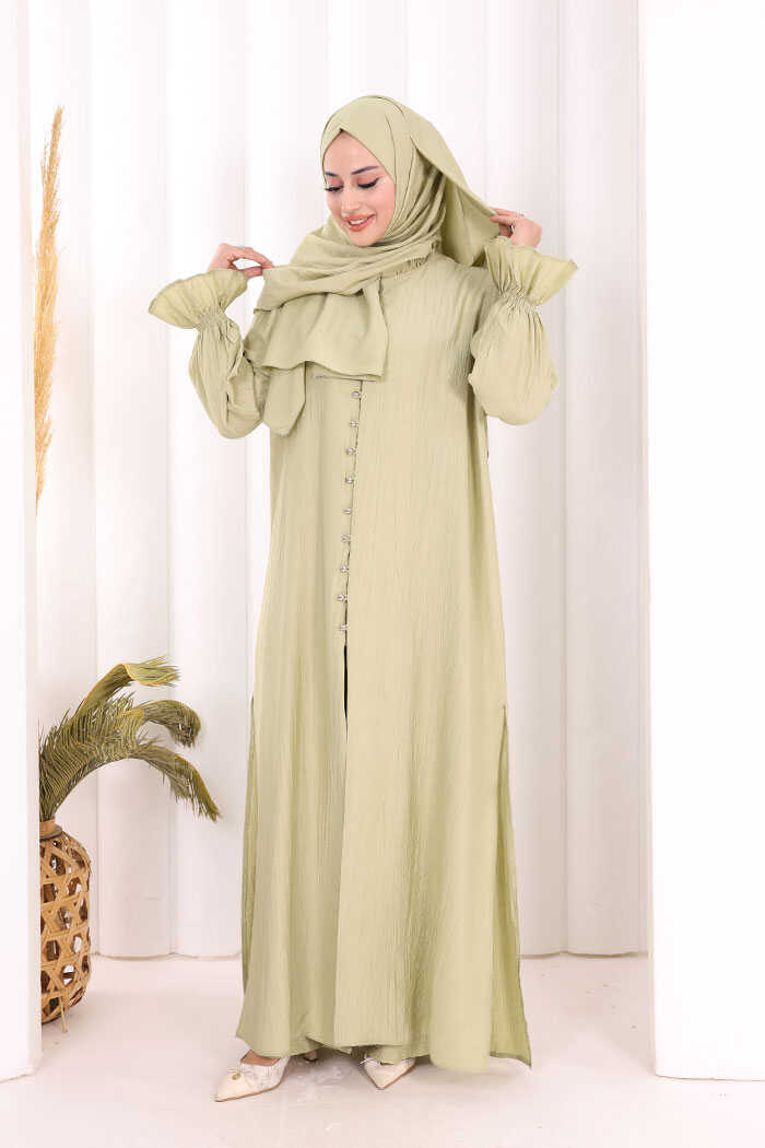 Hac Umre Takım Önü Düğmeli Tunik,Pantolon ŞAL HEDİYE 8014 Yağ Yeşili