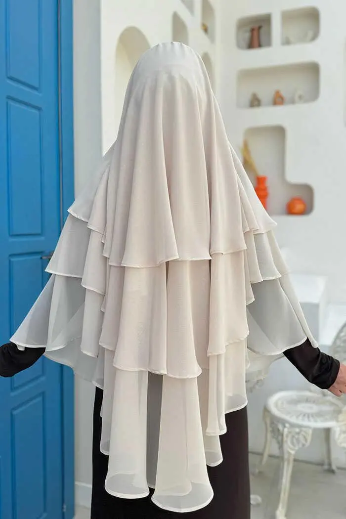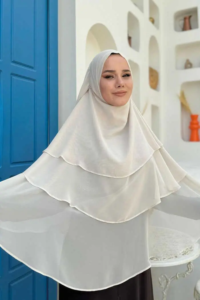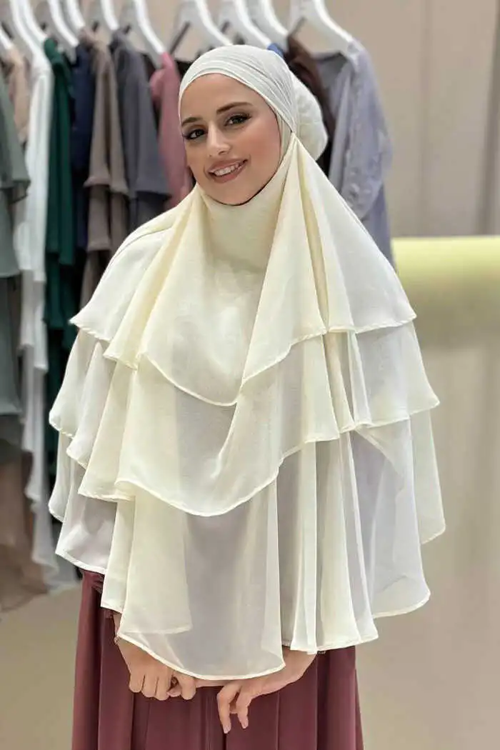 Peçeli 3 Katlı Şifon Sufle Şal 6012 Krem