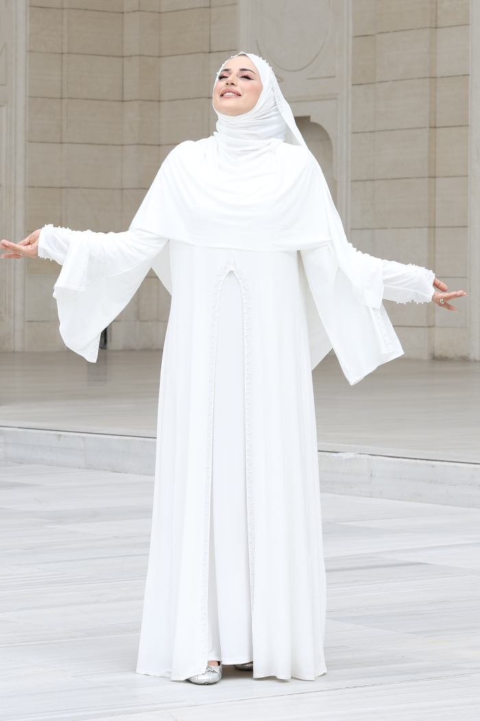 Pelerin, Elbise ve Şal Üçlü Takım 3932 Ekru