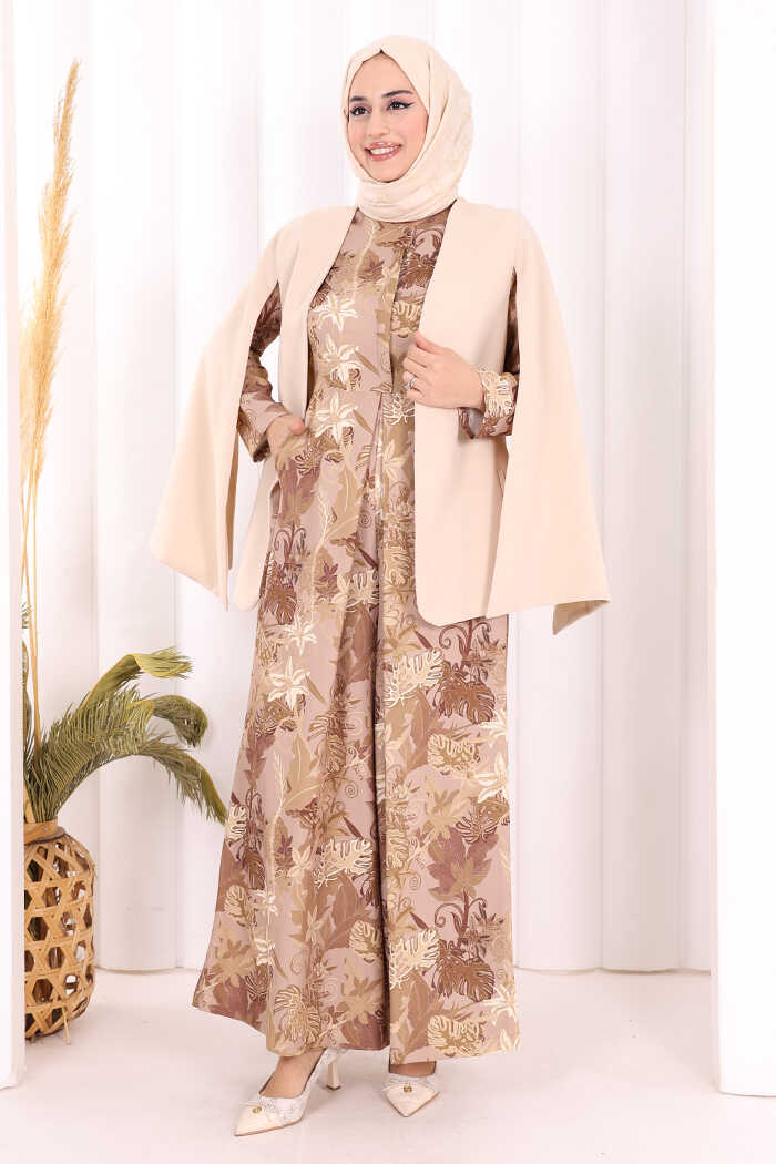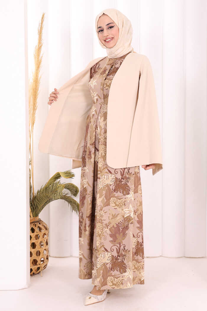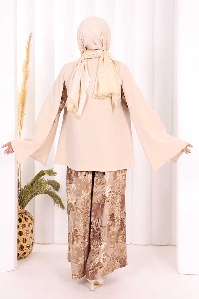 Pelerin Kol Görünümlü Düz Astarlı Ceket 7666 Taş