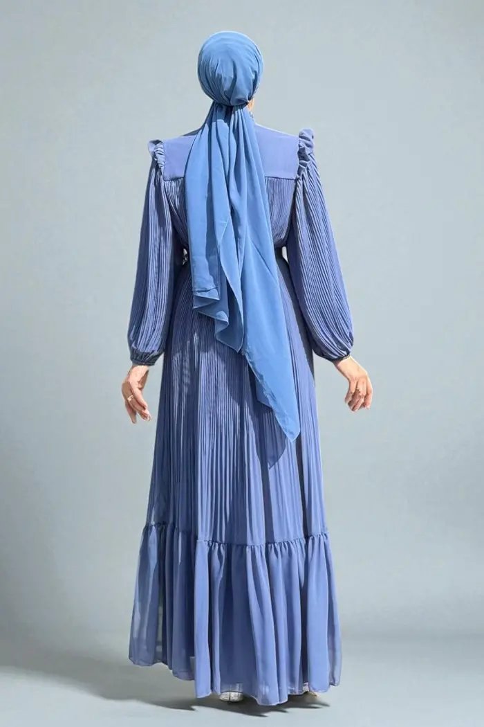 PİLİSELİ FIRFIR GÖRÜNÜMLÜ ŞİFON ELBİSE