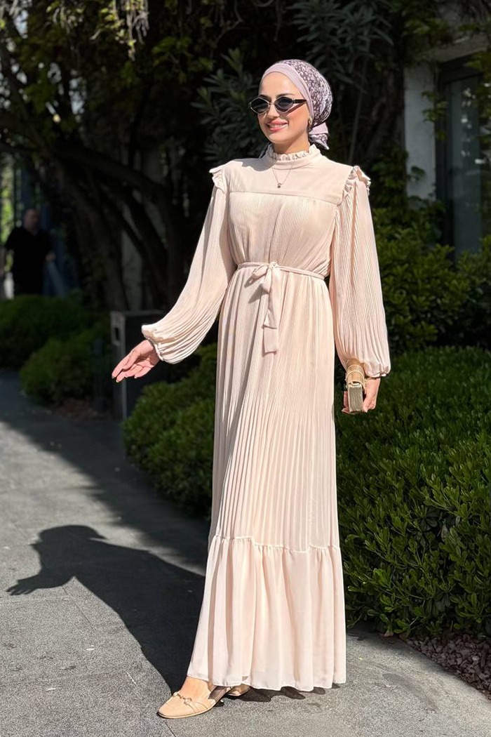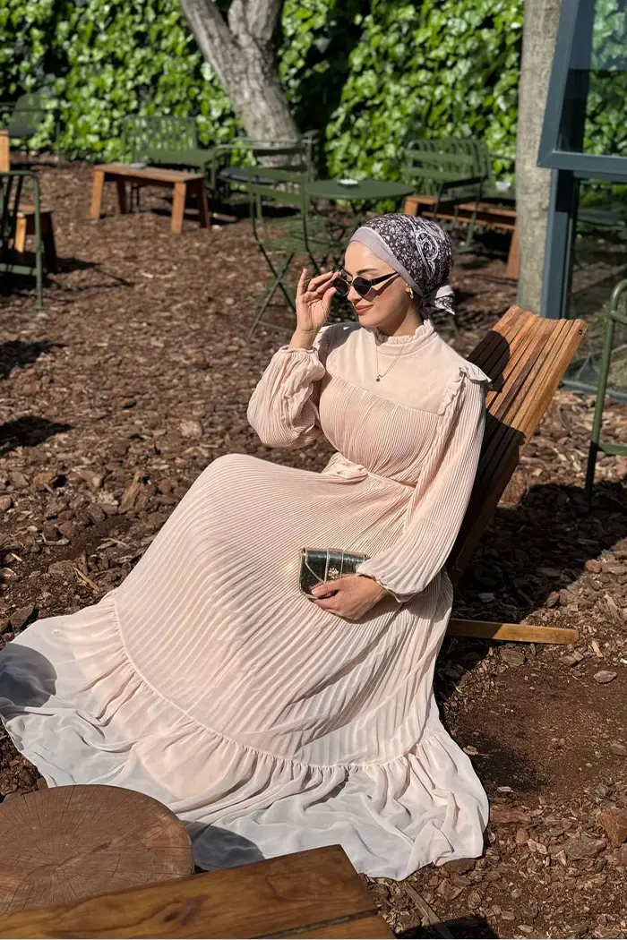 PİLİSELİ FIRFIR GÖRÜNÜMLÜ ŞİFON ELBİSE