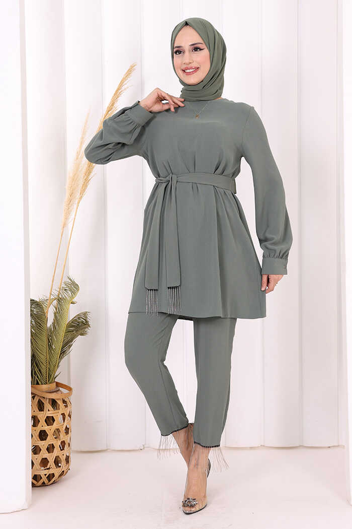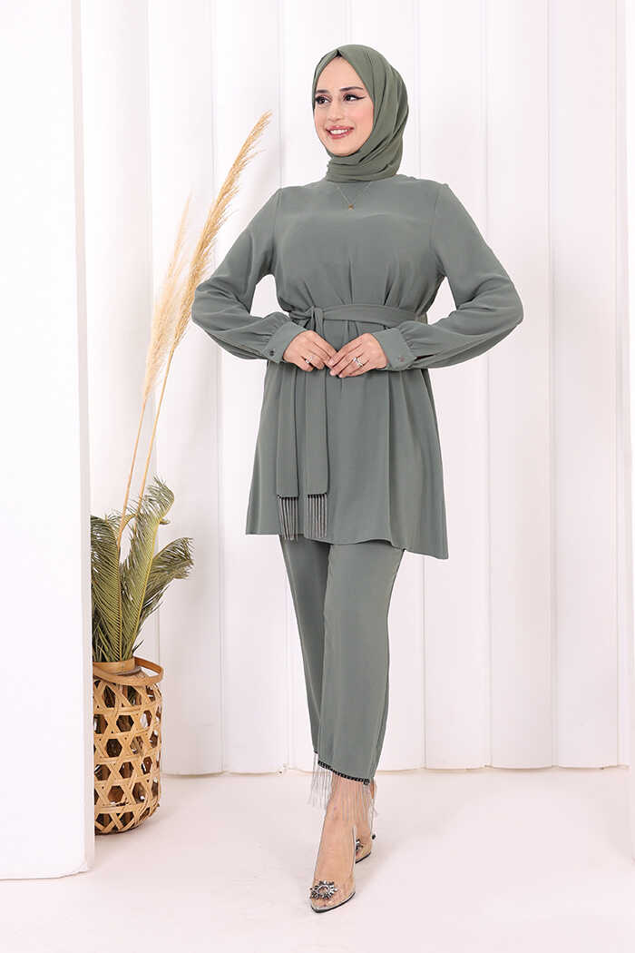 Tunik ve pantolon olmak üzere 2 parçadan oluşmaktadır.