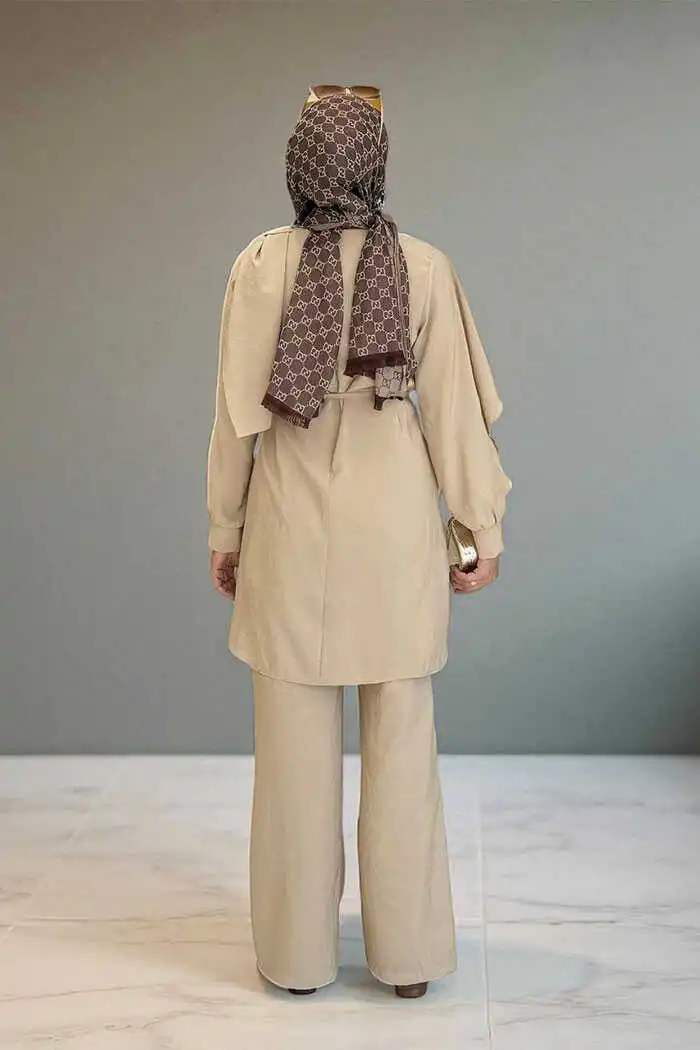Sedef Kumaş Tunik Pantolon İkili Takım 8693 Vizon