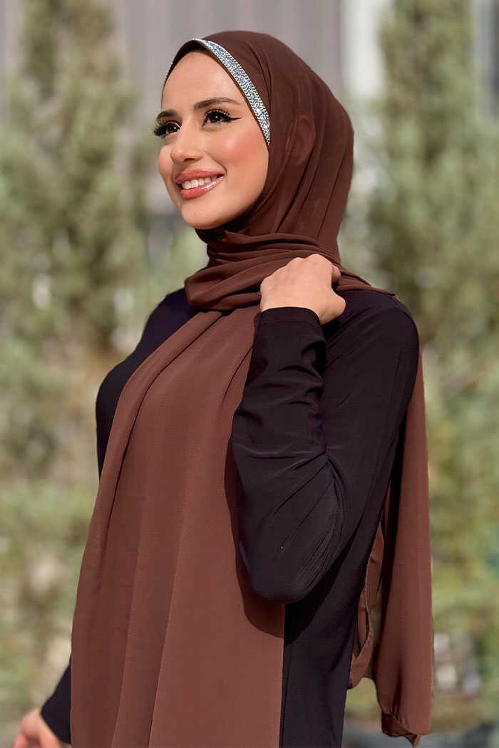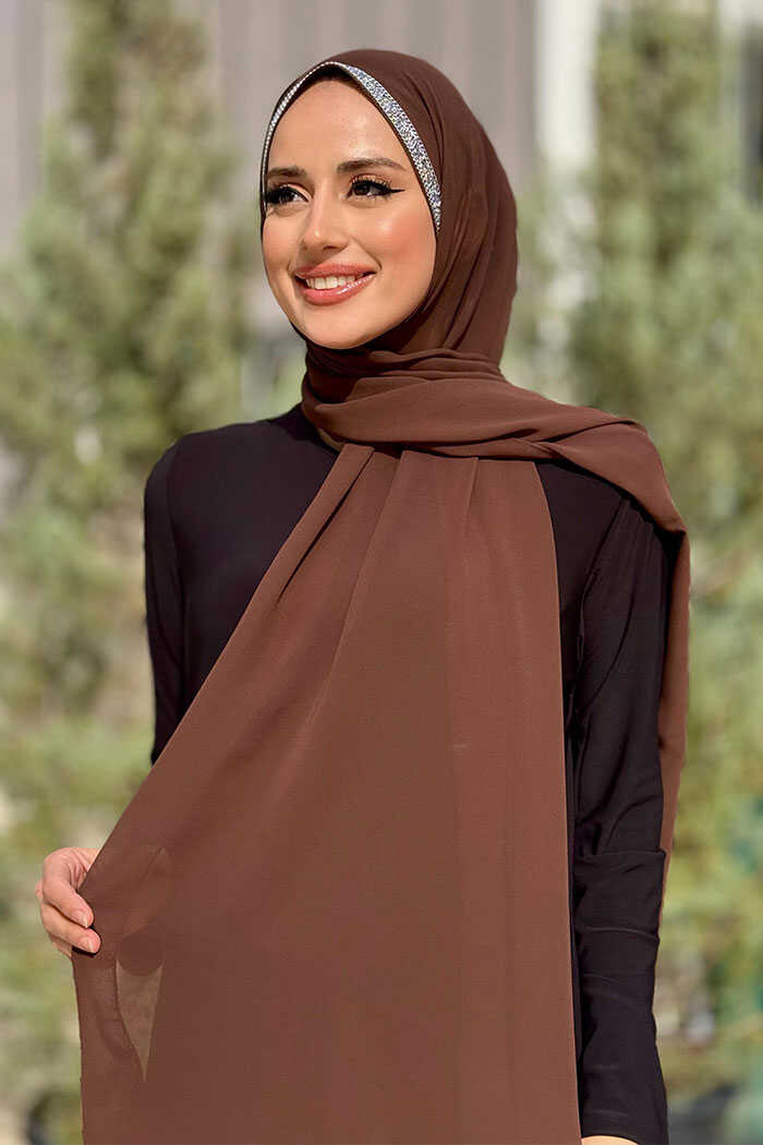 Taş Detaylı Şifon Şal 2026 Kahverengi
