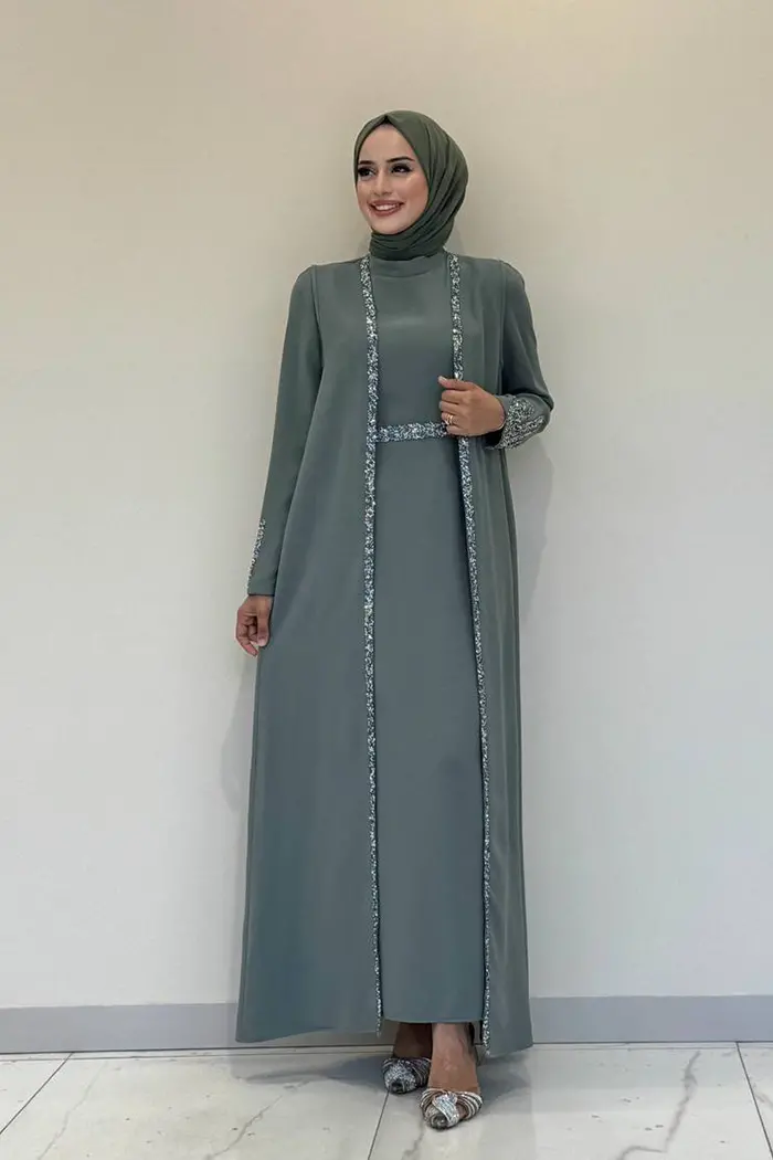 TAŞ İŞLEMELİ YELEKLİ ELBİSE TAKIM: