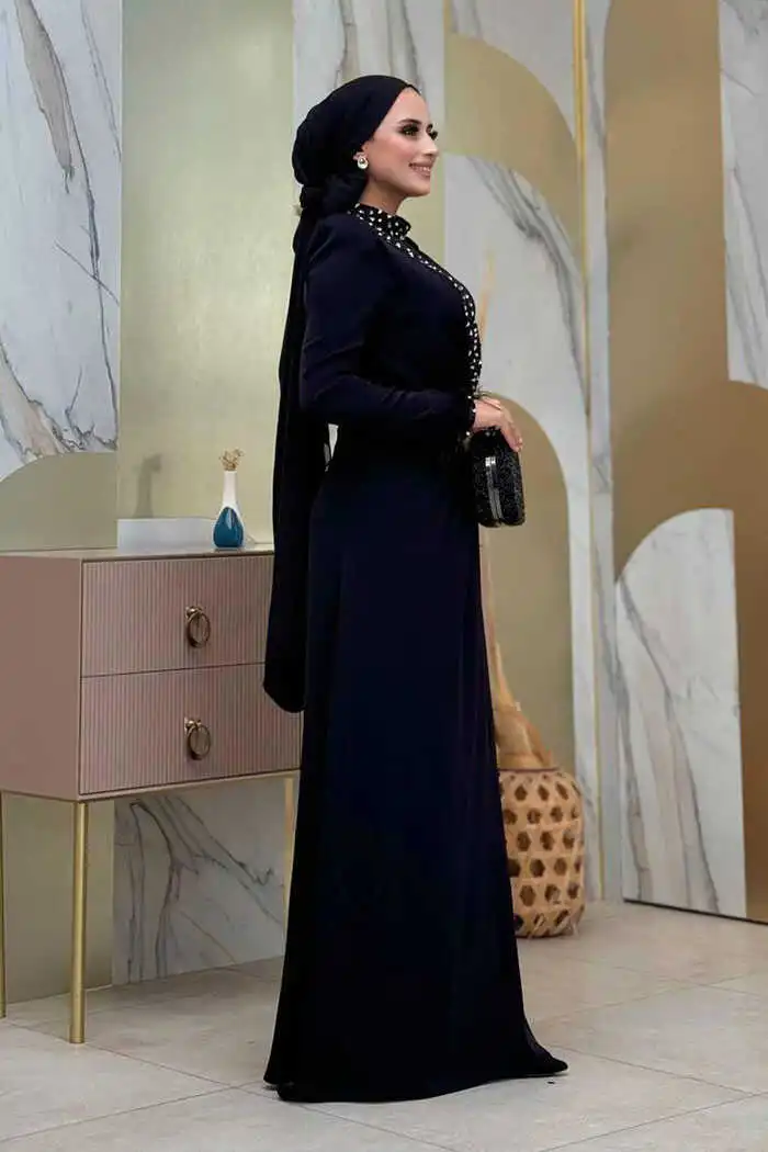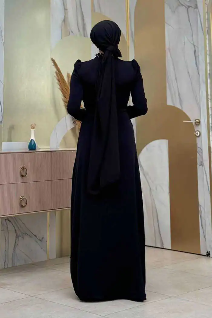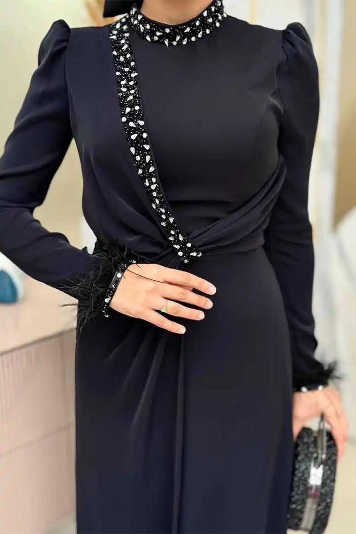 Taş ve Tüy Detaylı Abiye 7021 Siyah