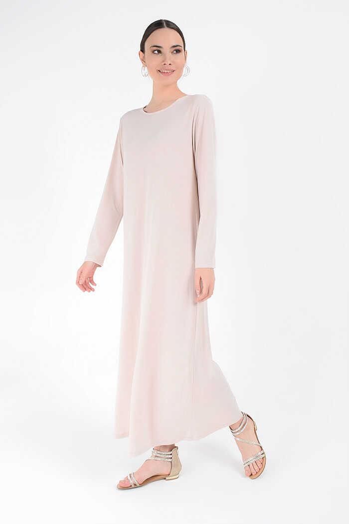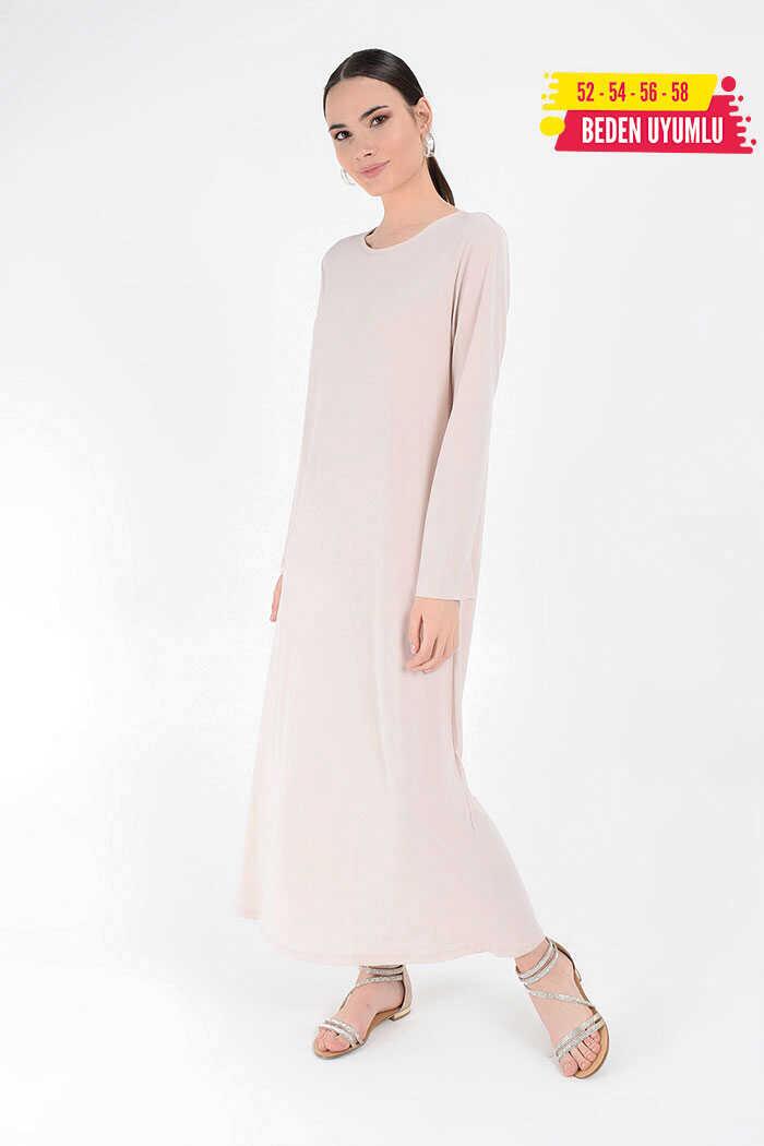 XXL Büyük Beden Düz Bisklet Yaka Uzun Kol İç Sandy Elbise 3202-3 Taş