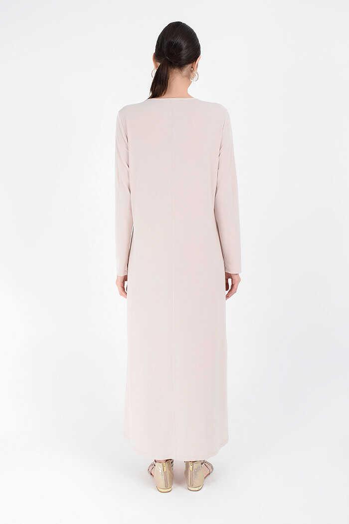 BATTAL BEDEN UZUN KOLLU UZUN SANDY İÇ ELBİSE Sandy Elbise Sıfır Yakadır