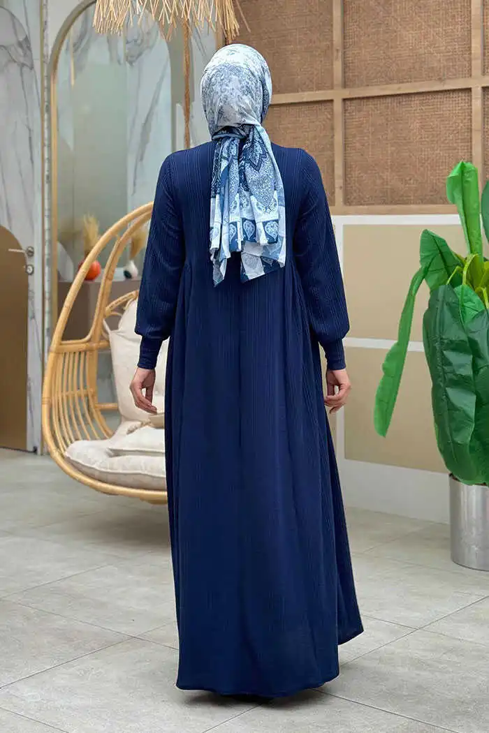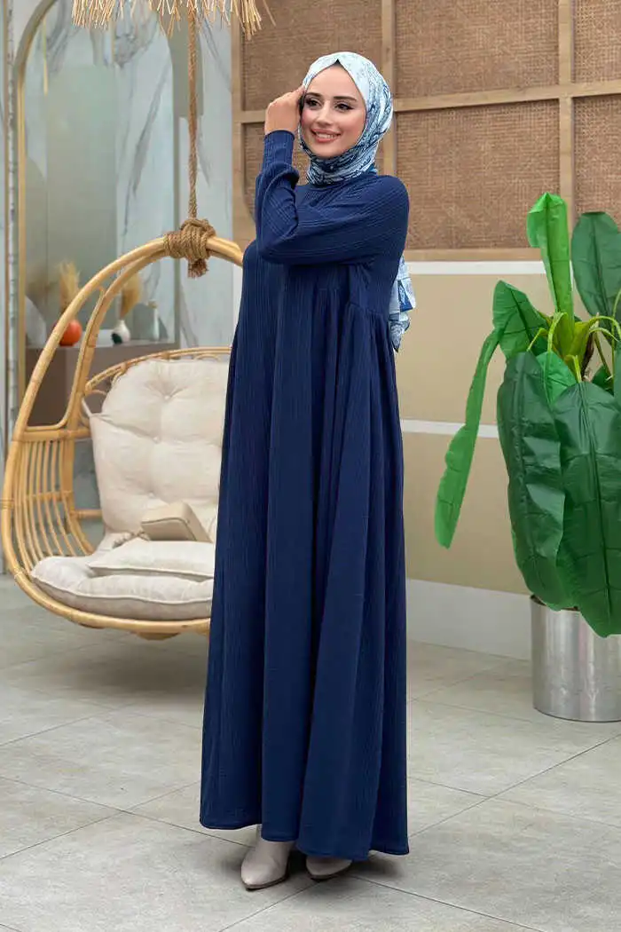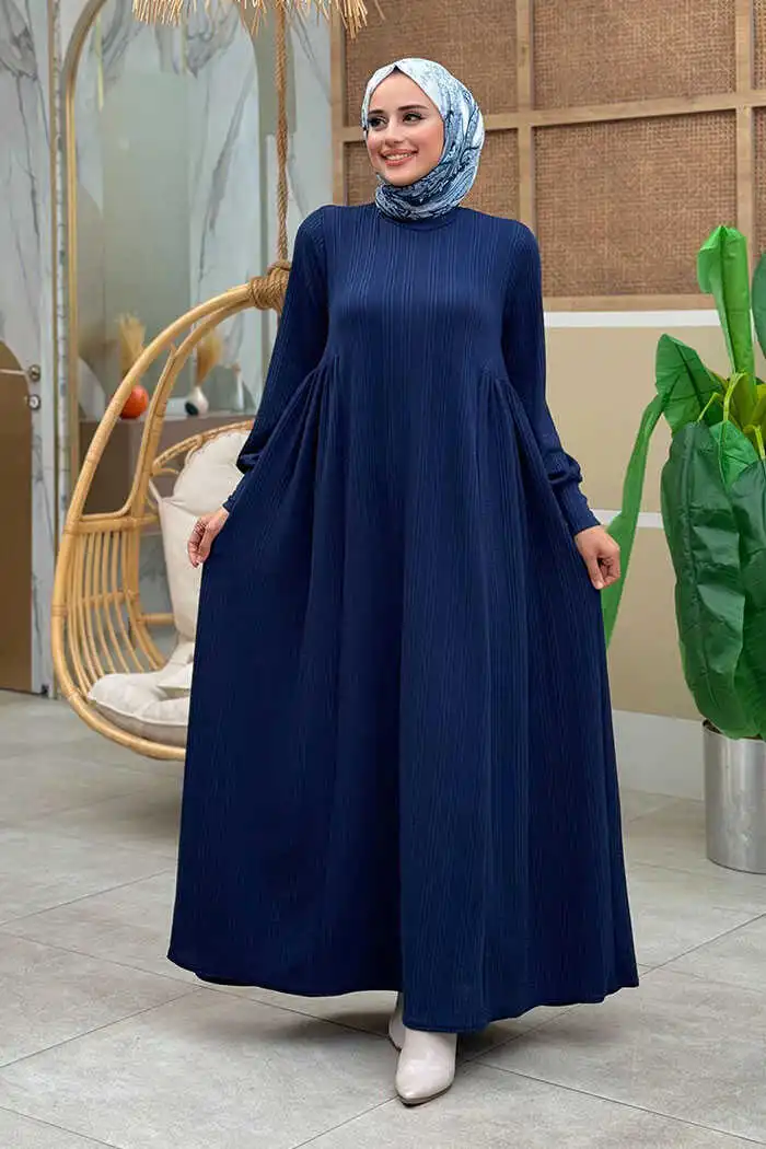 Yanları Büzgülü Örme Elbise 6026 Lacivert
