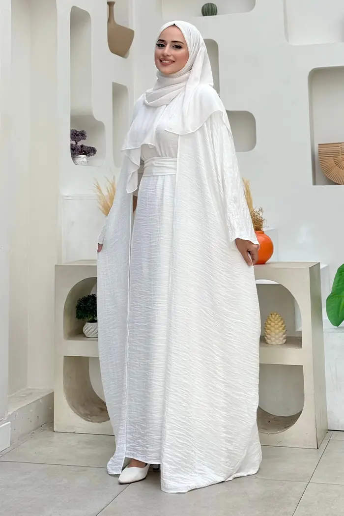 Abaya ve elbise olmak üzere 2 parçadan oluşmaktadır.