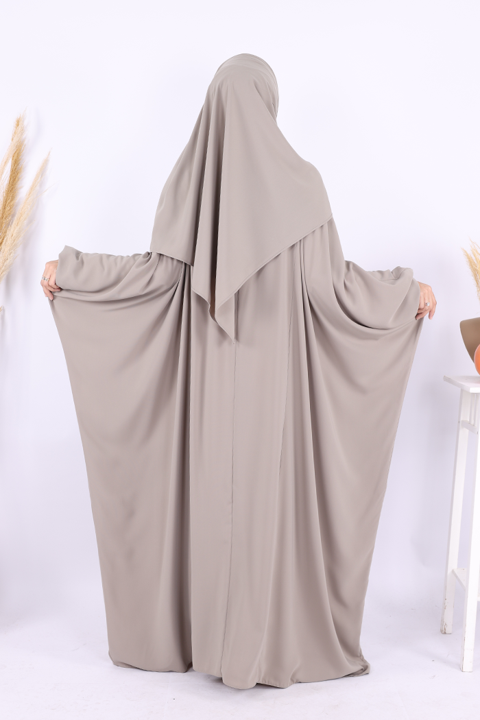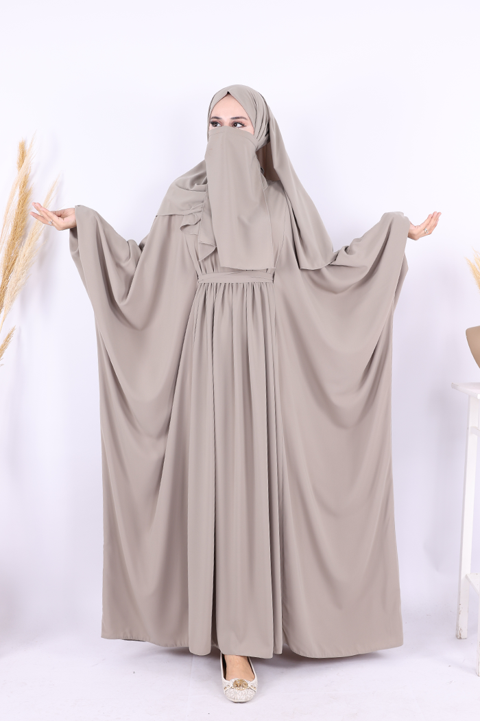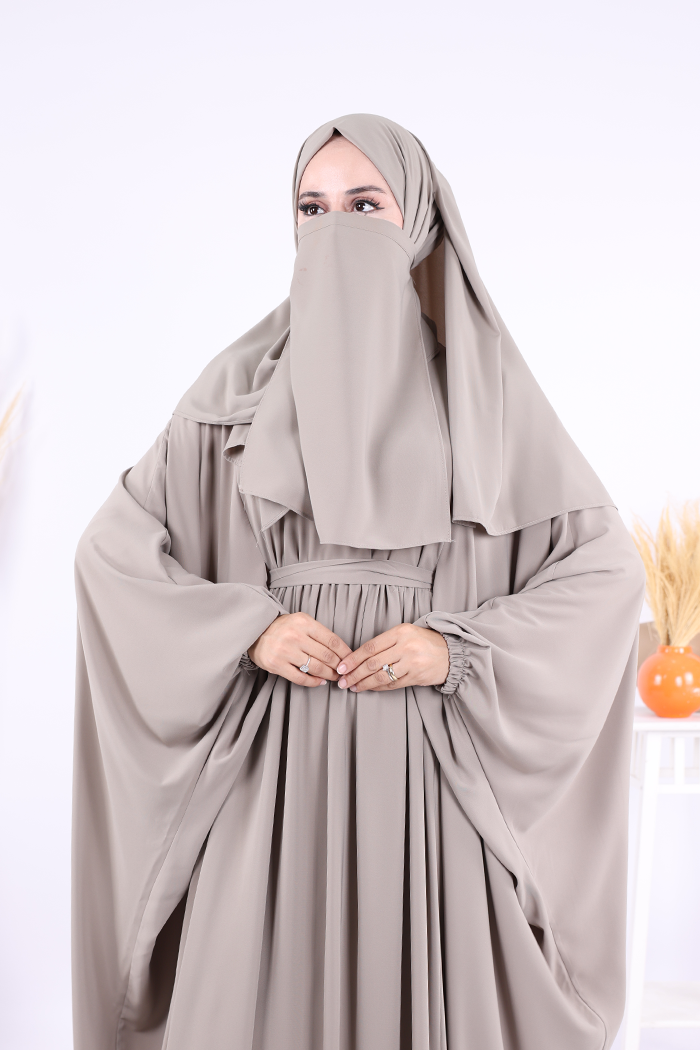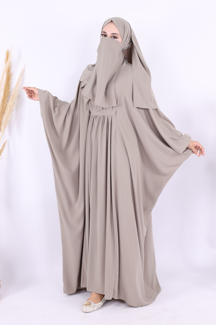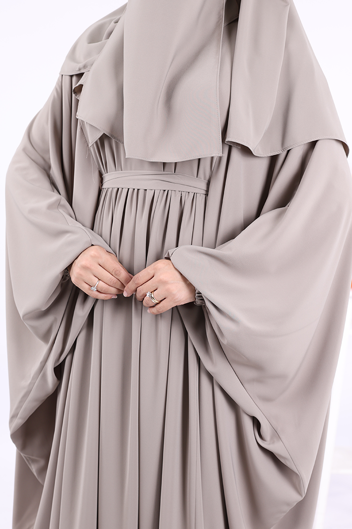Yarasakol Belden Kuşaklı Peçeli, Şallı Elbise 6038 Vizon
